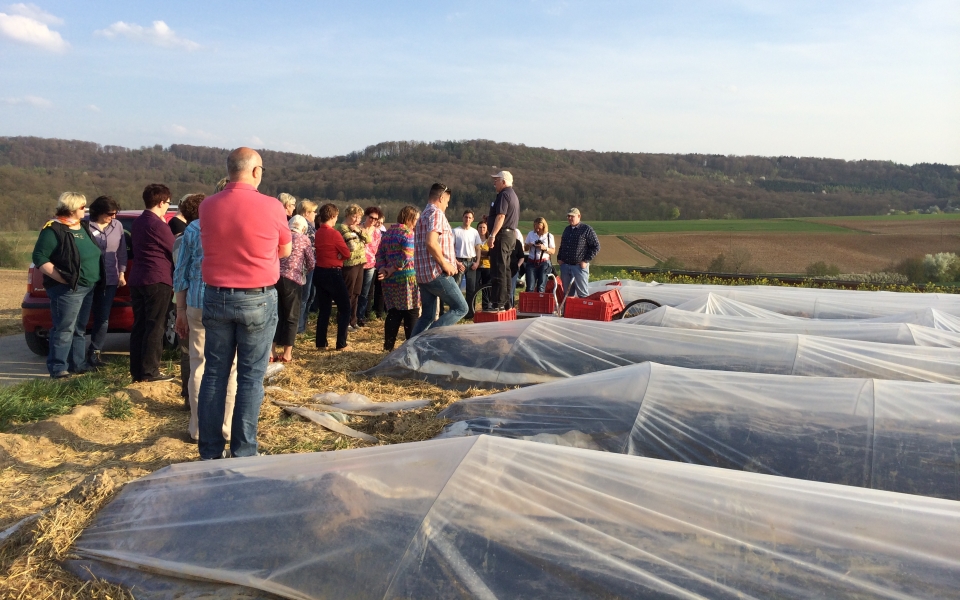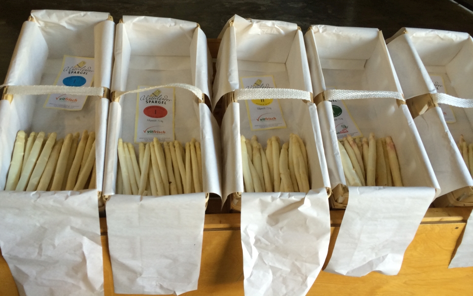 Die Spargelbotschafterinnen werden vor ihren Einsätzen an einem Schulungstag über Spargelsortierungen und Spargelklassen, die Bedienung der elektronischen Waagen und ggf. der Spargelschälmaschine ausgebildet: