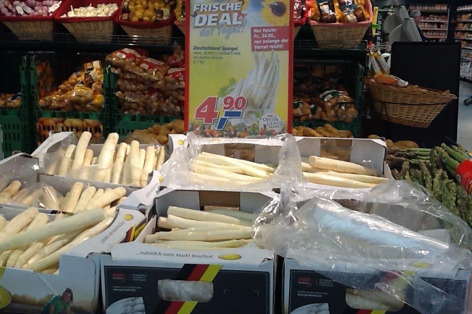 In allen Kaufland-Märkten im Heilbronner Raum steht neben dem Spargel-Verkaufsstand eine Spargelschälmaschine. Möchte der Kunde seinen Spargel geschält haben, macht dies die Spargelbotschafterin mit der Schälmaschine.